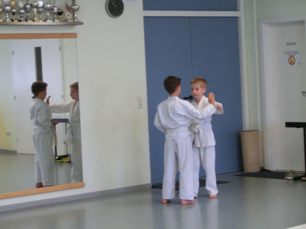 Wenn ein so junger Mensch ein so verlässlicher Partner ist, kann man auch mal über den „offiziellen“ Termin einer Prüfung hinwegsehen, weshalb es auch dazu kam, dass Ruben in den letzten Minuten des ihm so wichtigen Fußballspiels, kurz und unerwartet, einen Auszug seiner Fähigkeiten unter Beweis stellen konnte. Wir beglückwünschen ihn zum bestandenen 5.Kyû!