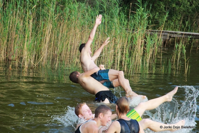 Kata ist noch viel mehr als das, was ich in den letzten Zeilen niedergeschrieben habe. Für mich persönlich bedeutet Kata in erster Linie ein Kampf mit sich selbst, den man immer und immer wieder aufs Neue austragen muss. Zum Beispiel dann, wenn man sich fragt, ob man im Trainingslager mit den anderen mithalten kann oder lieber zu Hause bleiben soll. Oder wenn es darum geht neue Kontakte zu knüpfen und Leute anzusprechen, die man noch nicht so gut kennt. Kata ist Überwindung. Und für mich persönlich gibt es keine bessere Möglichkeit Tag für Tag aufs Neue mit sich zu kämpfen, als in einem Trainingslager, in dem man nette Leute um sich herum hat, die die Leidenschaft für die Kampfkunst teilen und einem tagtäglich zur Seite stehen und Mut zusprechen, auch wenn man schon völlig fertig ist. Daher möchte ich insbesondere bei Olaf, aber auch bei Hendrik, Sven, Dinah, Andrea, Bernd, Anders und all den anderen bedanken, die mir während den 8 Tagen immer wieder eine Stütze waren und dazu beigetragen haben, dass wir eine tolle gemeinsame Woche am Frauensee verbringen konnten.