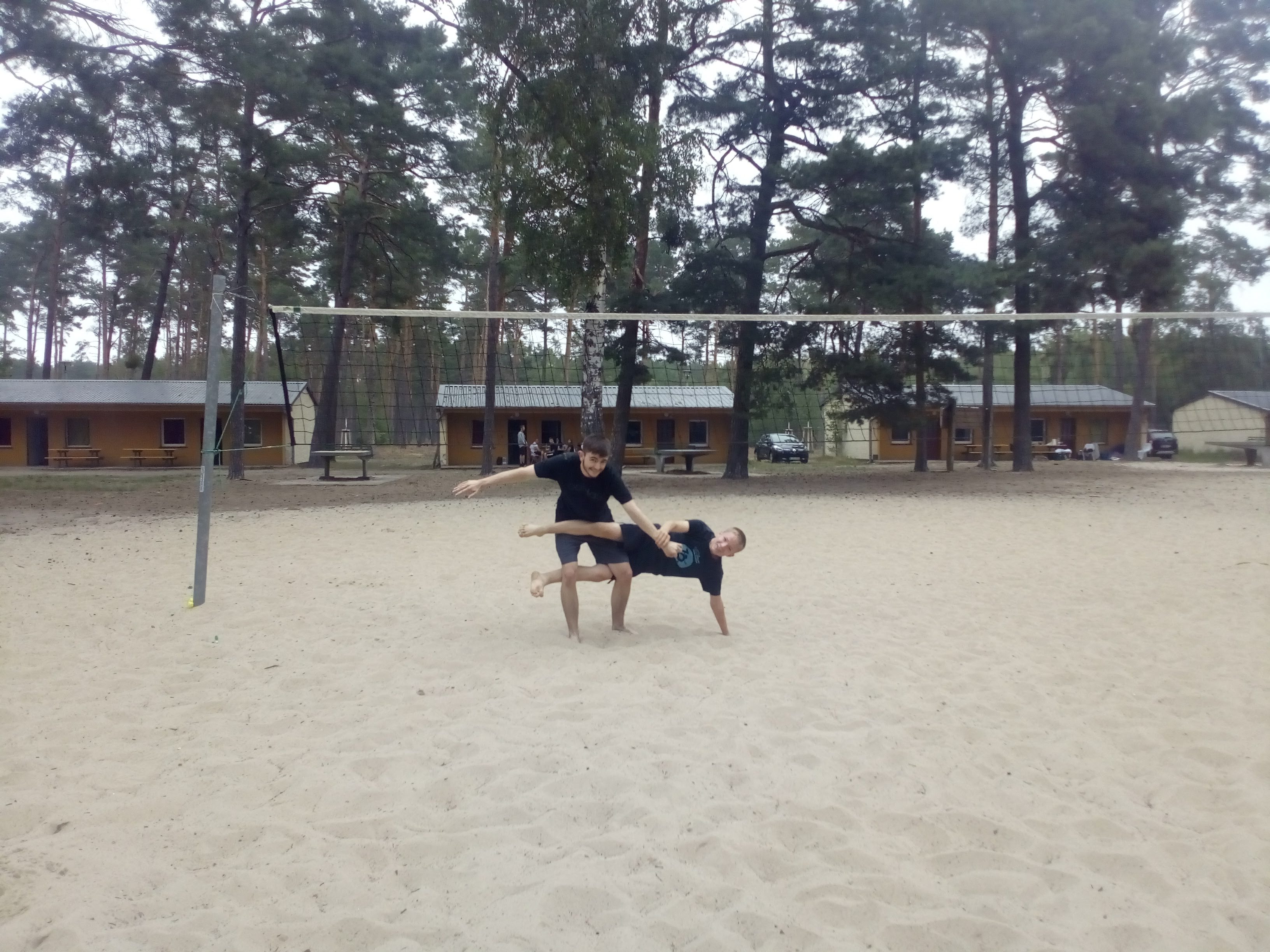 Nach jedem Training war man komplett durchgeschwitzt und auch sehr sandig da man während des Trainings des öfteren auf dem Boden oder im Sand des nahe gelegenen Volleyballfeldes gelandet war. Um es direkt zu sagen, manchmal sahen wir alle aus wie panierte Schnitzel! Von oben bis unten voller Sand, welcher sich zum Glück beim sofort nach dem Training stattfindenden Bad im erfrischenden See abspülen lies.