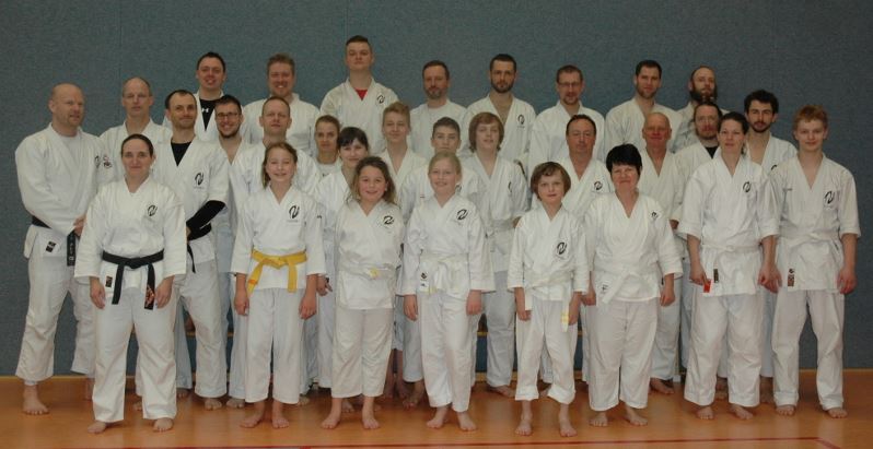 Auf den Seminaren tummeln sich immer dieselben Leute: Manche stehen kurz vor einer Graduierung und nutzen jede Gelegenheit, um mit Olaf zu üben. Naja, sie müssen auch, wenn sie graduieren wollen. Andere haben schon einen Dan-Grad oder sogar den zweiten oder mehr, und sind auch immer da, um von Olaf sowie auch voneinander zu lernen. Andere Seminarteilnehmer, wie ich, sind Jahre von einer hohen Graduierung entfernt, und kommen trotzdem ab und an dazu. Mich hat diesmal das Ausschreibungsthema angelockt: Morgens die Bo-Kata „Shirotaro no kon“ und die Bo-Partnerform „Peichin Kumibo“ lernen. Und mittags Nyumon, „Grundschule“. Bo macht Spaß und bei Nyumon gibt es immer was zu lernen oder zu verbessern, auch wenn man die Form schon kann.