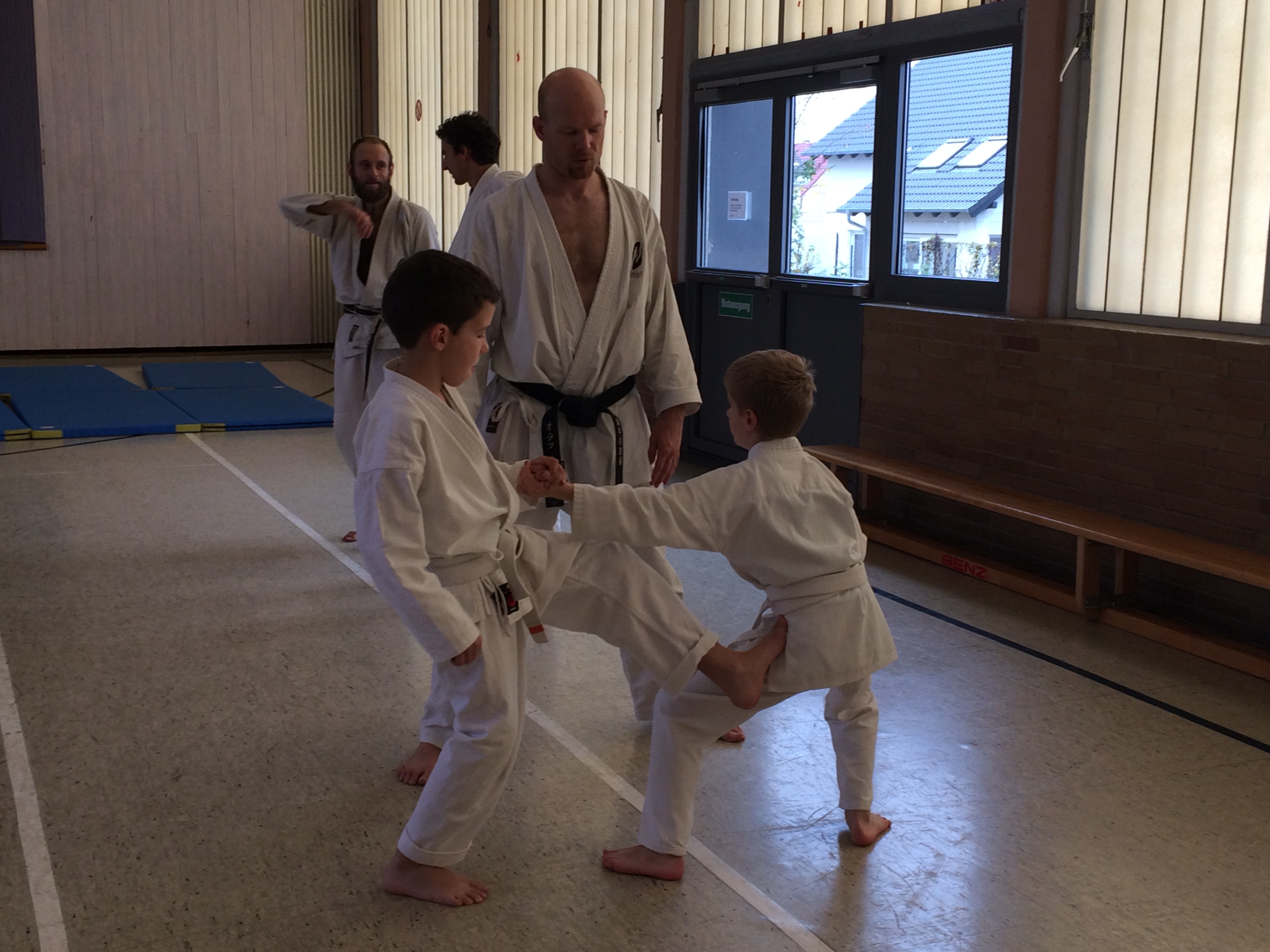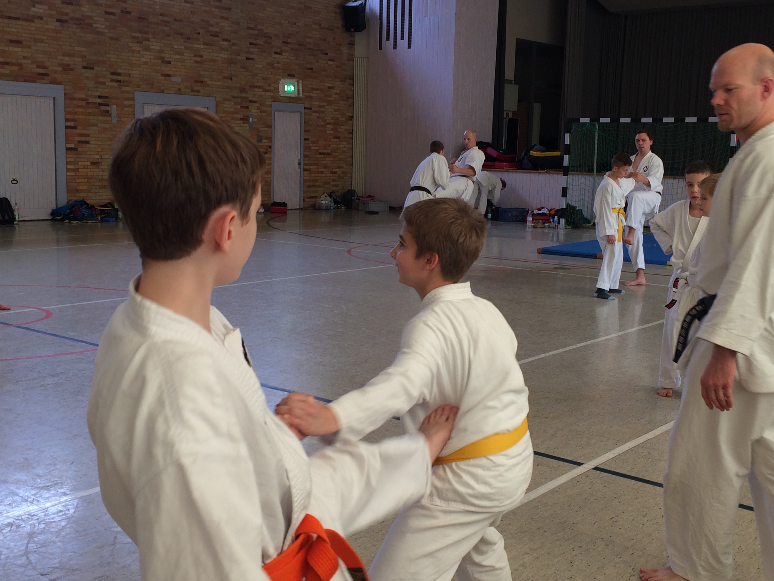Am Samstagmorgen sind wir ganz gespannt und aufgeregt in die LUS-Turnhalle gegangen. Wir durften zum ersten Mal zu einem Seminar mit Olaf Krey. Nach dem Aufwärmen haben wir Tegumis geübt, das sind Partnerübungen, die man mit den Armen ausführt. Nach der Mittagspause standen Fußtritte auf dem Programm. Die letzte Übungseinheit an diesem Tag war das Üben mit dem Bo. Er hat auch manchmal den Kopf oder den ein oder anderen Zeh getroffen. Nachdem wir gefühlte 10 Minuten Sit-ups machen mussten, sind wir müde aber glücklich heimgegangen.