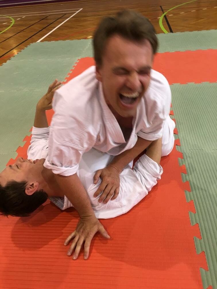 Am zweiten Tag starten wir nach dem Aufwärmen mit Heishu waza, was wir natürlich schon oft im Training gemacht haben. Hier hatte ich die Möglichkeit meine Technik zu verbessern und nebenbei war es mehr als interessant, die Technik einmal von Patrick McCarthy persönlich erklärt zu bekommen. Und ich kann euch versichern, Sabrina und Steve machen das mehr als sehr gut!