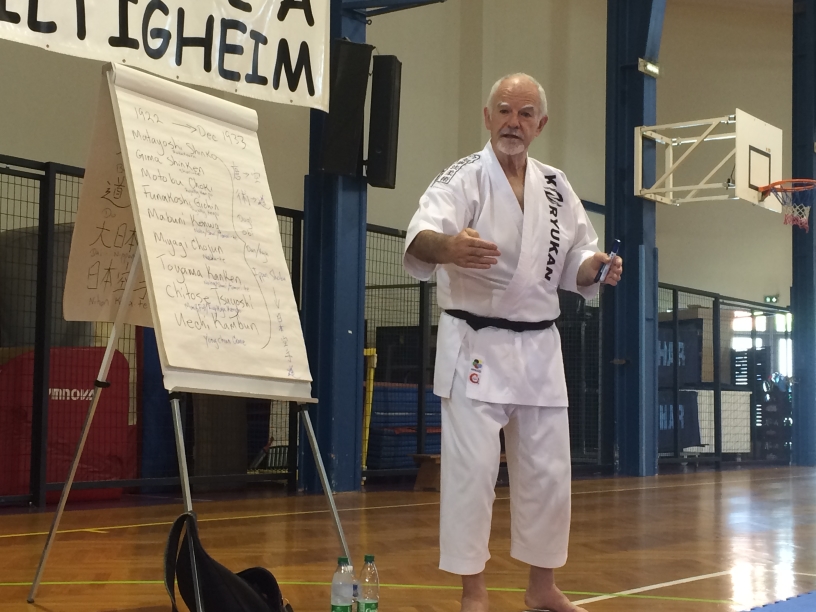 Samstag, früh morgens, strahlend blauer Himmel, die Sonne knallt, das Thermometer hat die 25 Grad Hürde bereits genommen und ein Wochenende mit Temperaturen jenseits der 30 Grad steht an. Doch ich packe meine Tasche nicht für einen herrlichen Tag am Badesee, sondern tausche meine Badehose gegen meinen frisch gewaschenen Karateanzug, um das Wochenende in einer muffigen Sporthalle in Straßburg zu verbringen! Wie bitte? Der hat doch nicht mehr alle Tassen im Schrank, mögt ihr nun denken, doch etwas ganz besonders steht an und zwar ein Seminar mit unserem Sensei Patrick McCarthy! Ja, genau dieser McCarthy, dem wir – ich nenne es einmal so – unsere Karate-Philosophie Kôryu Uchinâdi (http://www.koryu-uchinadi.de) zu verdanken haben.