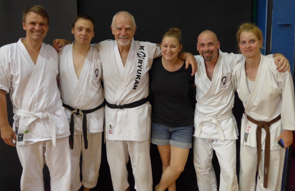Und so verging der erste Tag, Sensei McCarthy erklärt alle Übungen ausführlich und erläutert immer wieder, in welcher Verbindung die Übungen bzw. die Griffe zu den traditionellen Kata-Bewegungen stehen. Nebenbei erzählt er nette Anekdoten oder gibt Einblicke in die Geschichte von Karate. Hier betont er stets, dass Karate “Selbstverteidigung” ist und es dabei nicht auf Stile ankommt. In einer realen “Ernstsituation” wird die Frage nach deinem Karate-Stil wohl das Letzte sein, wonach sich dein Gegenüber erkundigt.