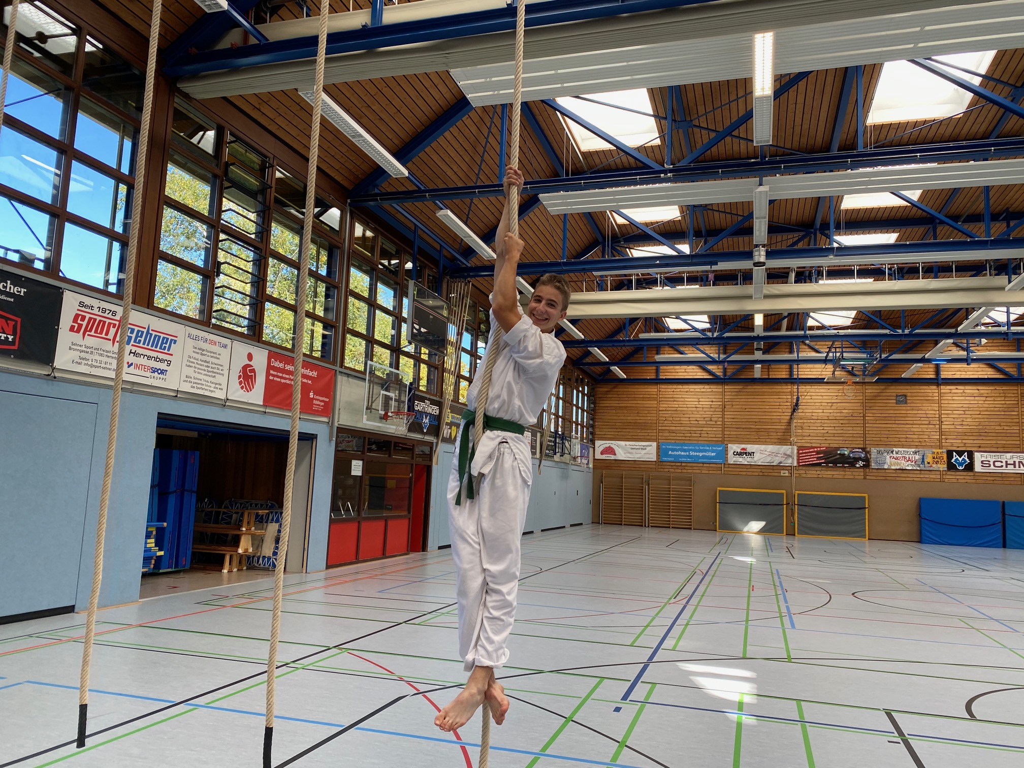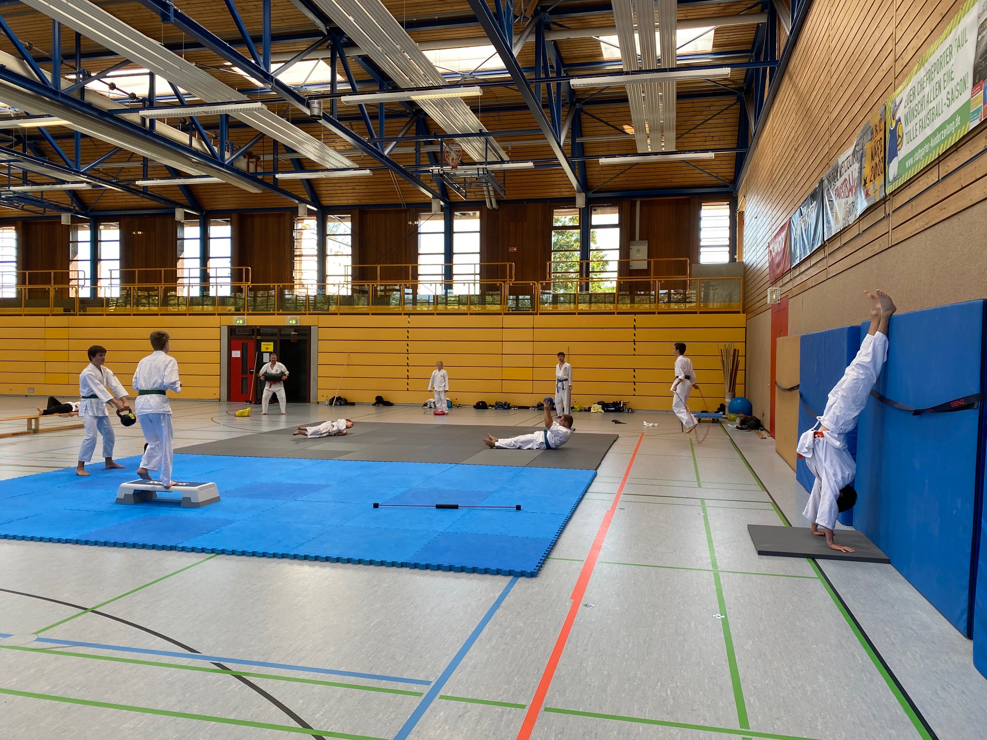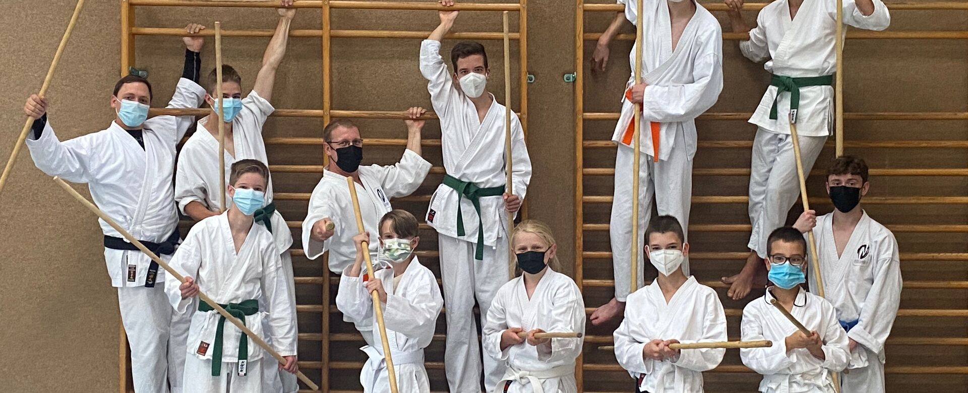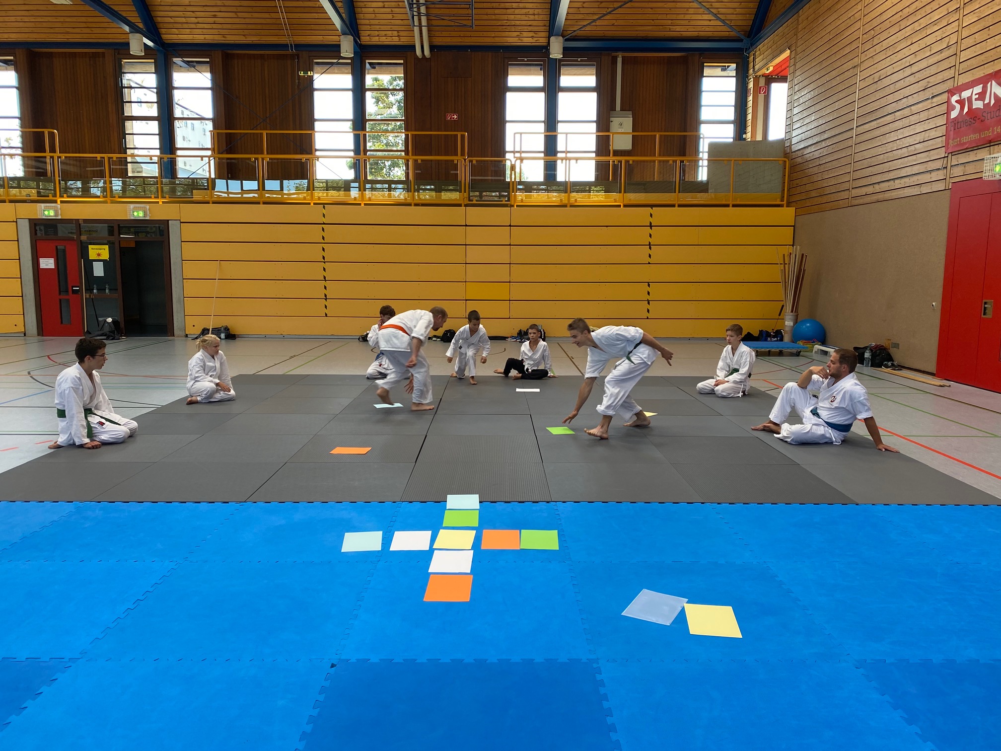 Diesen Samstag fand ein Trainingstag in Gärtringen statt. Der Tag war in drei unterschiedliche Abschnitte geteilt nämlich von 10-12 Uhr, von 13-15 Uhr und von 15:30 bis 17 Uhr. Da ich allerdings am Wochenende sehr lange schlafe, habe ich das Morgentraining leider verpasst und nahm erst nach dem Mittagessen am Training teil. Das war allerdings kein Problem, da wir nach dem Essen, um warm zu werden, zuerst ein Zirkeltraining machten und dann die Handpratzen holten. Da zwei Teilnehmer dazugekommen waren, musste sich auch niemand umstellen und jeder konnte mit dem Trainingspartner vom Vormittag weiterüben. Wir schlugen dann bis um 15 Uhr auf die Handpratzen, und da es sich hierbei um sehr einfache Kombinationen handelte, kamen alle mit. Zwar taten mir dank dem ganzen Schlagen an den nächsten Tagen die Arme weh, allerdings fühlt es sich immer wieder gut an, wenn man auch gegen ein stabiles Objekt haut, was man im Normal- und Idealfall nicht wirklich kennt. Nach dieser Trainingseinheit hatten wir eine kurze Pause mit ein paar Stücken Kuchen zur Stärkung. Im letzten Teil des Trainings übten wir mit dem Bo (Langstock) und die Erfahreneren prägten sich in der ersten Hälfte alle Verteidigungen wieder ein, welche sie in den vielen Monaten seit dem letzten Bo-Training verlernten, während den noch nicht sehr Erfahrenen einige Grundtechniken beigebracht wurden. Zum Ende der Trainingseinheit wurde noch ein wenig das Bo-Handling geübt. Ganz zum Schluss gab es noch ein wenig Krafttraining mit dem Bo.