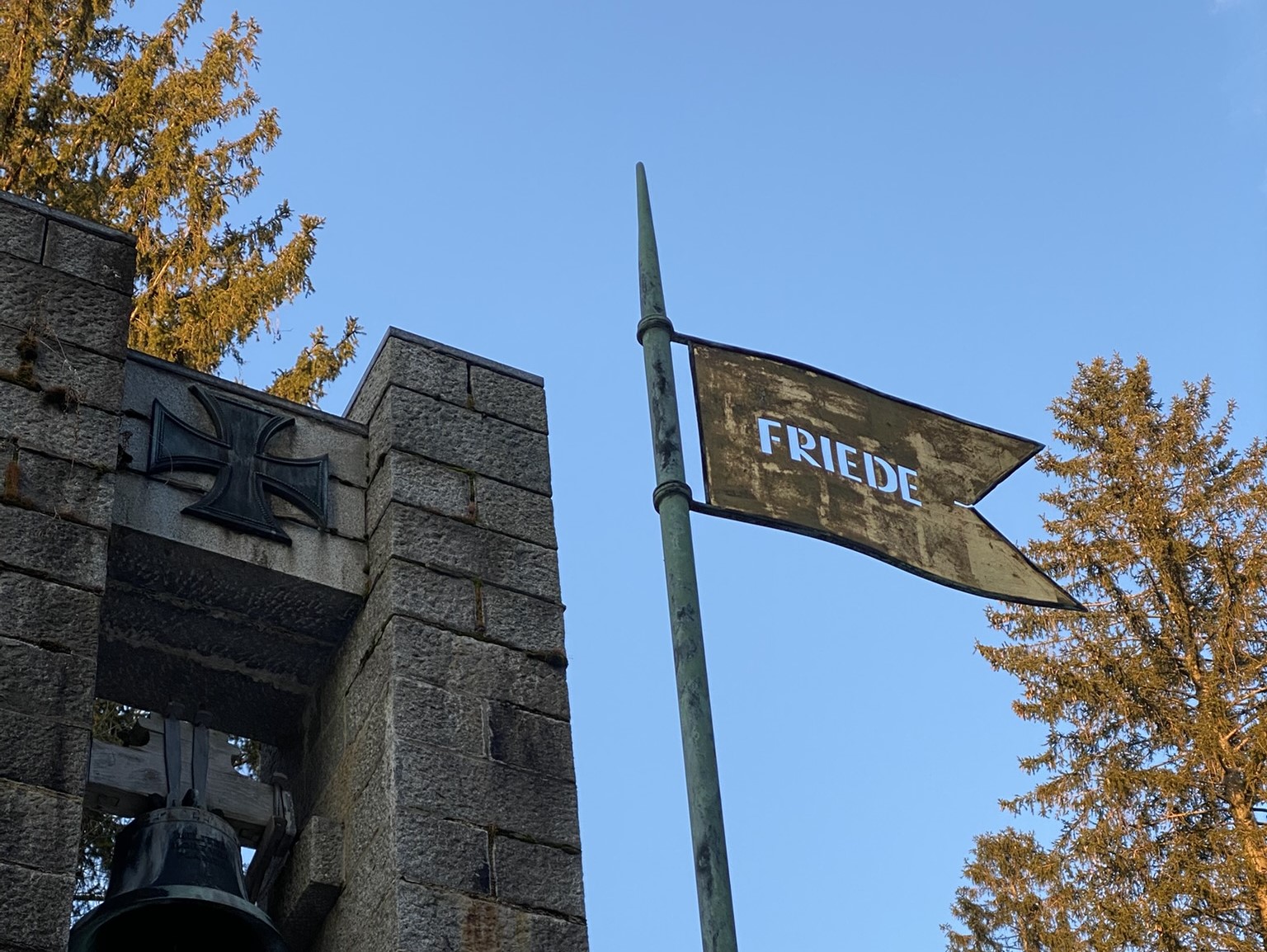 Das letzte Bild habe ich auf unserer Wanderung am Samstagnachmittag gemacht. Es zeigt einen sehr kleinen Ausschnitt einer Gedenkstätte zum Andenken gefallener Soldaten aus dem Ort "Bischofsgrün" in mehreren Kriegen. Auf einer Tafel stand:
